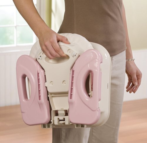 The deluxe comfort, folding booster seat provides an ultra-compact folding design for easy storage and portability. The multiple height adjustments allow for easy mealtime feeding at the table, along with a full sized tray and restraints. As the child grows, it can be used as a toddler chair for playroom or living room "just my size" comfort...